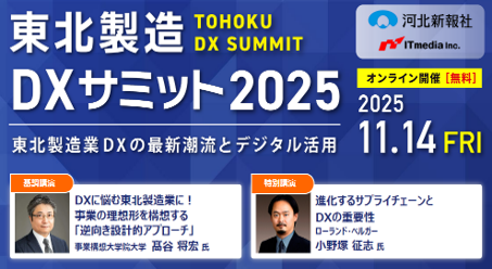東北の製造業を対象に、最新のDX事例や課題解決のヒントを紹介する「東北製造DXサミット2025」が開催されます。