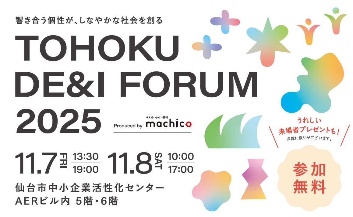 当社は、株式会社ユーメディアが2025年11月7日(金)・8日(土)に開催する、「TOHOKU DE&I FORUM 2025~響き合う個性が、しなやかな社会を創る~」に協賛いたします。