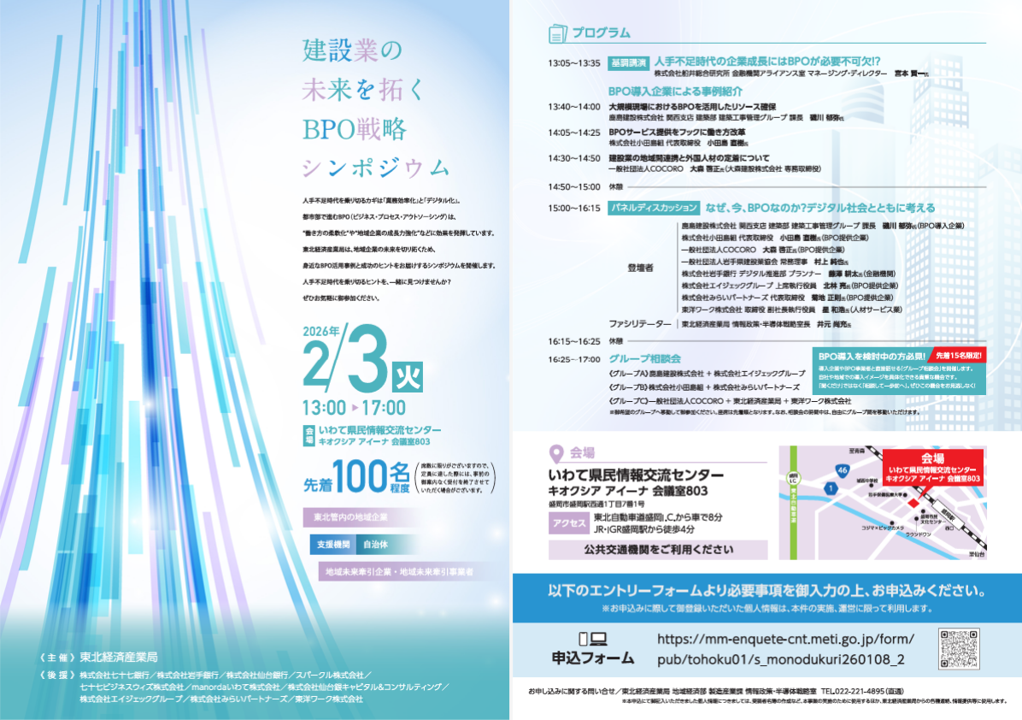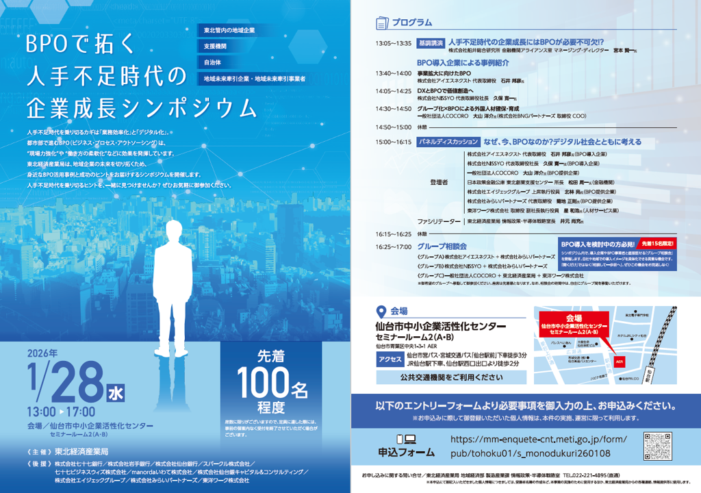 【METI】地域企業におけるBPO活用に向けたシンポジウム【仙台1/28】【盛岡2/3】2026.1.23 投稿