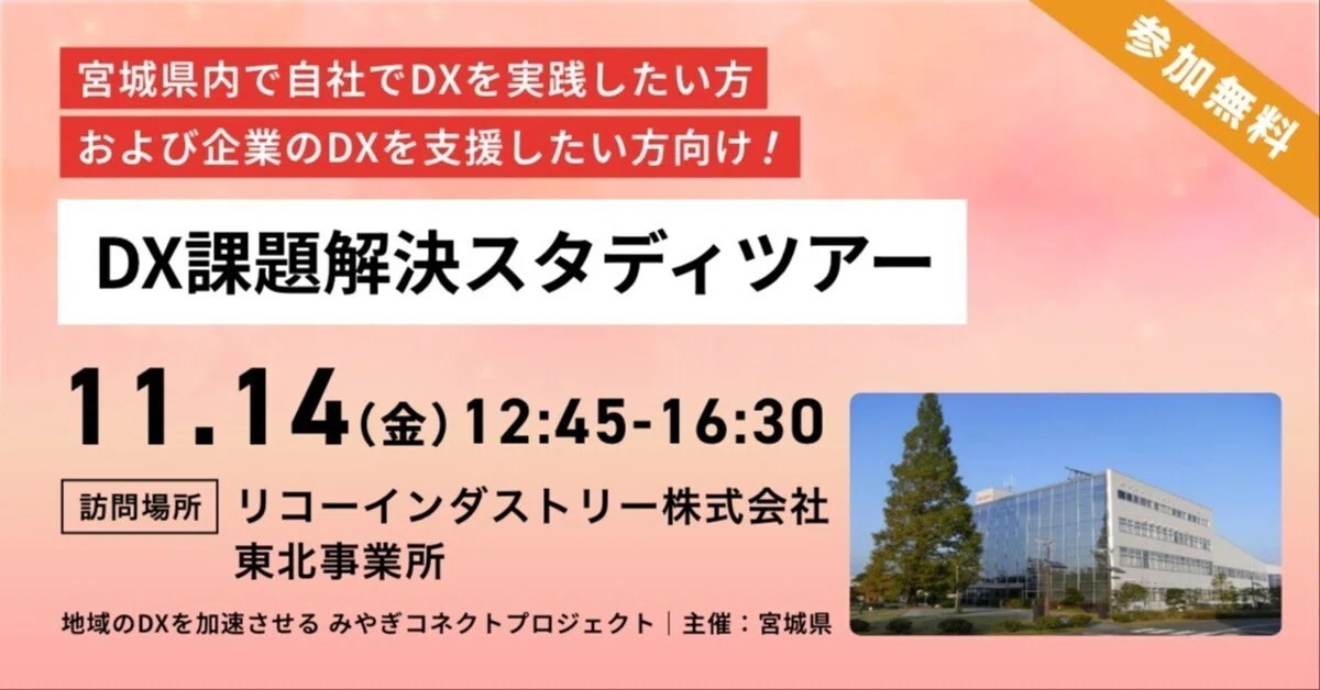 本スタディツアーは「机上の学び」ではなく、「現場での観察+思考+対話」で、自社のDX推進を“具体”に動かすための場です。宮城県内企業の皆さま、ぜひこの機会を活かして、新たな視点・パートナー・実践の糸口を掴んでください。